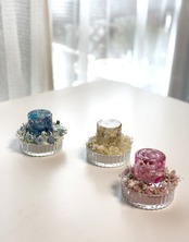 グローイングアロマフラワーは、固まるオイルを使用した新感覚のアイテムです。色とりどりのフラワーがオイルに包まれ、3種類のアロマオイルからお好きな香りを選ぶことができます。色は3種ご用意しており、お部屋の雰囲気に合わせてお選びいただけます。
